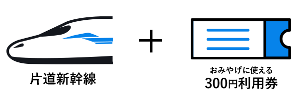 ぷらっとこだまは、東海道新幹線エリアですが、行こっか!こだまは、新大阪〜博多区間内の片道新幹線(こだま限定)区間に利用でき、おみやげにつかえる300円利用券が付いた切符です。