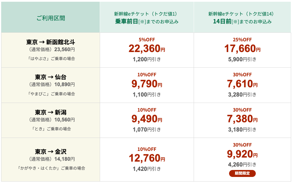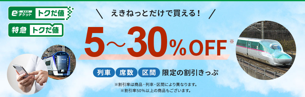 【お得技②】JR東日本|えきねっとの「トクだ値」で5〜30%割引