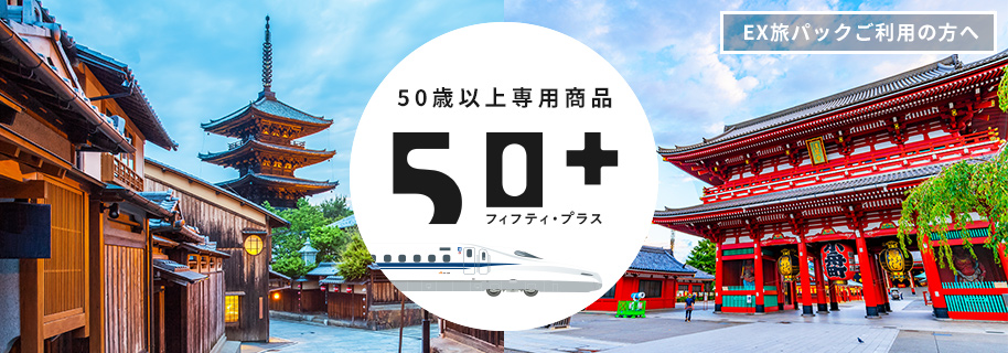 50歳以上の人が、エクスプレス予約に登録すれば(年会費:1,100円)、自動適用され、オトクな専用のツアープラン(新幹線+ホテル)を利用できます。