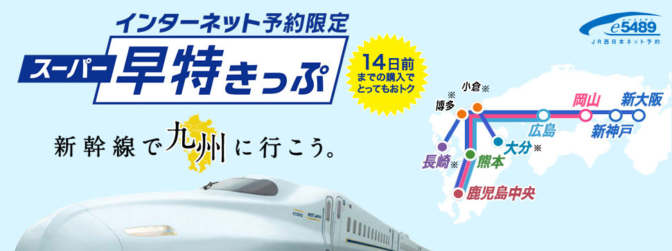 「スーパー早特きっぷ」は、JR西日本の予約サイト「e5489(いいごよやく)」で提供される割引サービスで、出発14日前までの予約で最大35%割引になるお得な商品です。