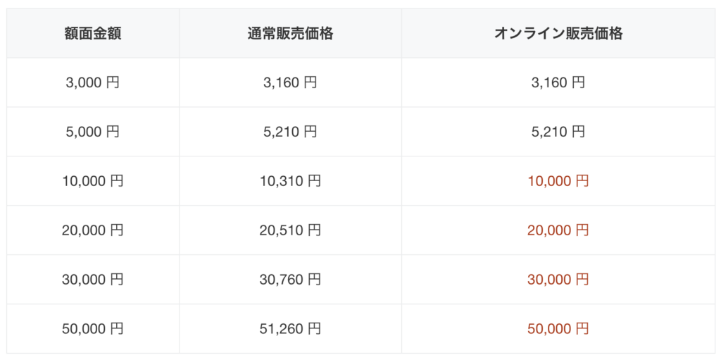 細かい点ですが、現時点では額面50,000円のギフトカードが、他の金額よりも買取率がやや良い傾向にあります。